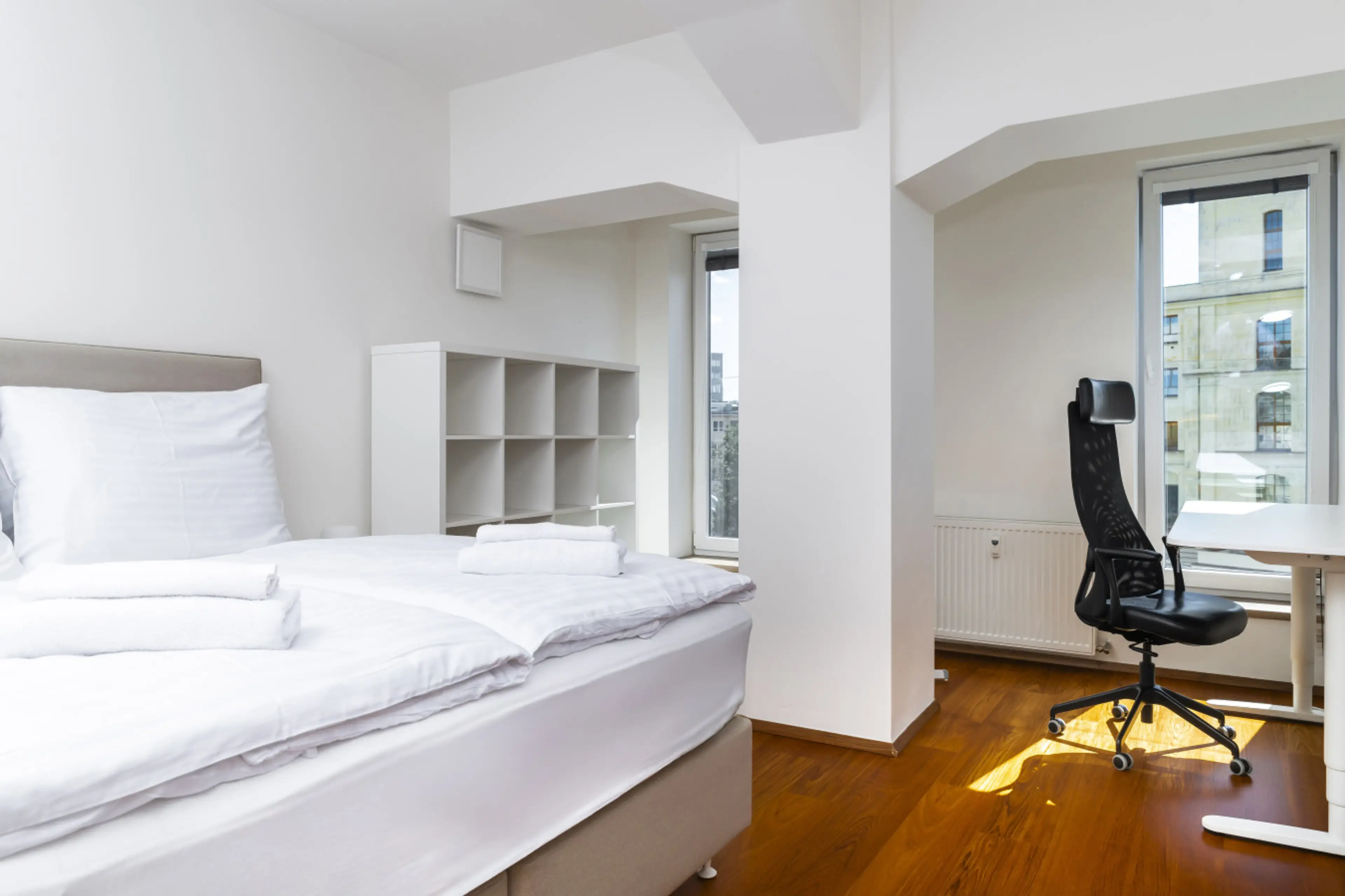 Welcome to Home for Successful Businessman, a fully furnished apartment designed for your modern lifestyle. Enjoy an equipped kitchen, big TV, and an adjustable standing/sitting work table. Control the smart lights with Google Home. Affordable parking nearby. Unwind on the balcony with a drink or re...