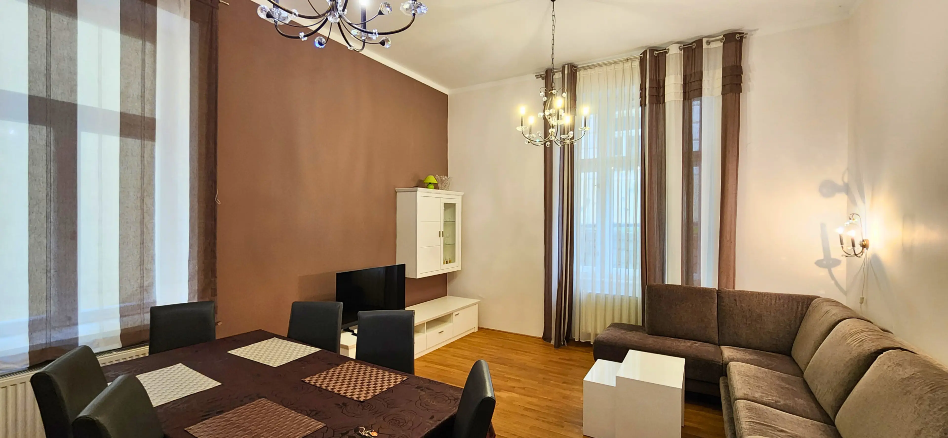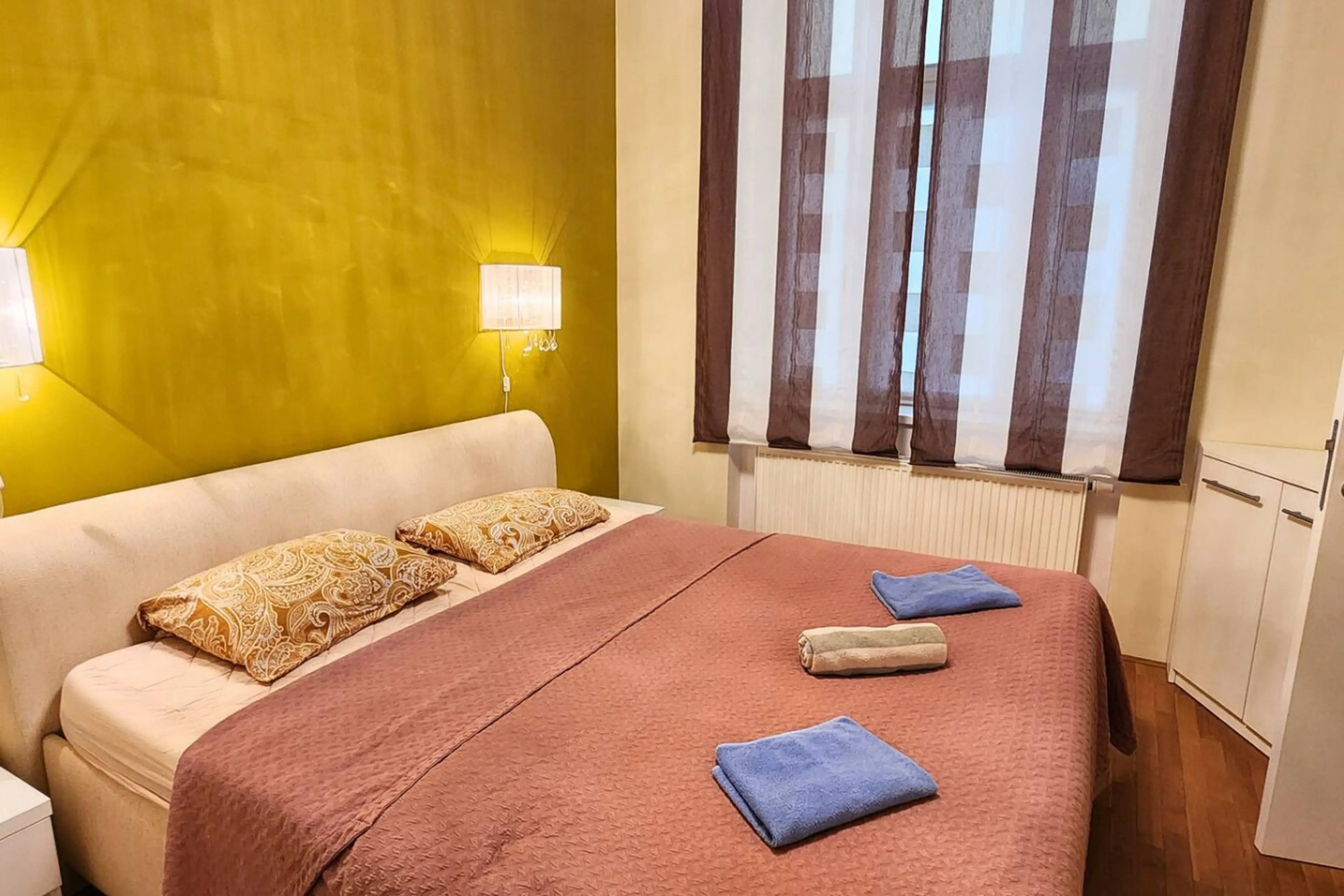 Enjoy a spacious, high-ceiling 2 bedrooms / 2 bathrooms apartment with elegant design in the very heart of the city. Each bedroom features a king-size bed and private bathroom access, plus a comfy sofa bed in the living room. Fully equipped kitchen, fast Wi-Fi, new TV, and heating ensure comfort. Ea...